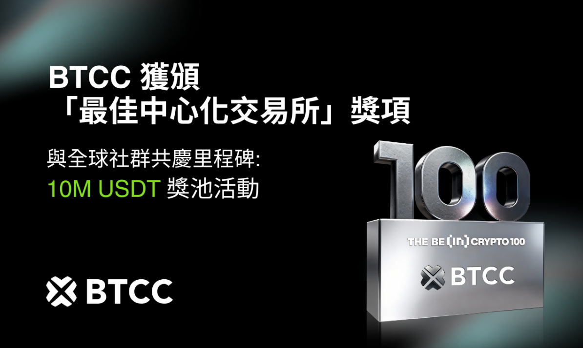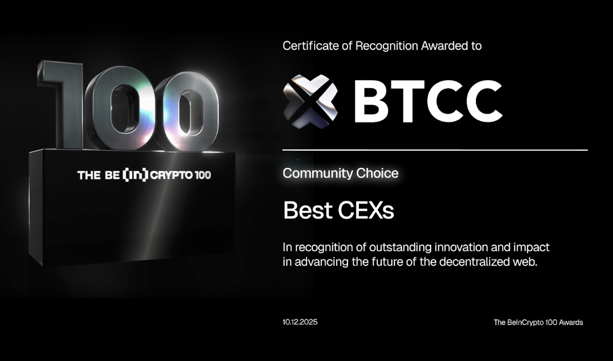 BTCC 交易所榮獲 2025 年 BeInCrypto 100 Awards「最佳中心化交易所」大獎