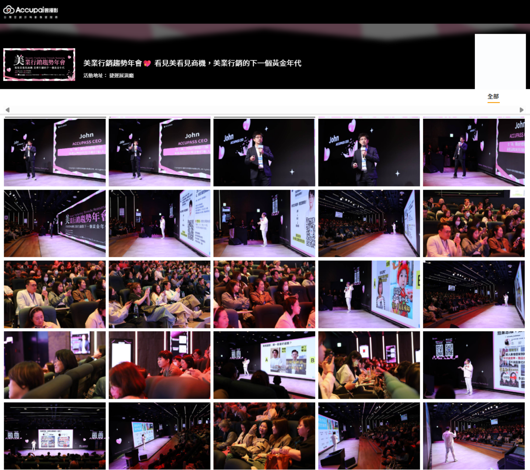 為全面升級活動體驗與現場互動,本屆《美業行銷趨勢年會》整合多項 ACCUPASS 科技服務,展現平台從報名、現場到內容擴散的完整活動支援能力。ACCUPASS 指出,此次活動特別使用 ACCUPAI 雲攝影服務,即時捕捉年會精彩畫面,並同步開放講師與與會者於活動進行中快速取得影像素材,大幅降低活動後製與素材流通的時間成本。