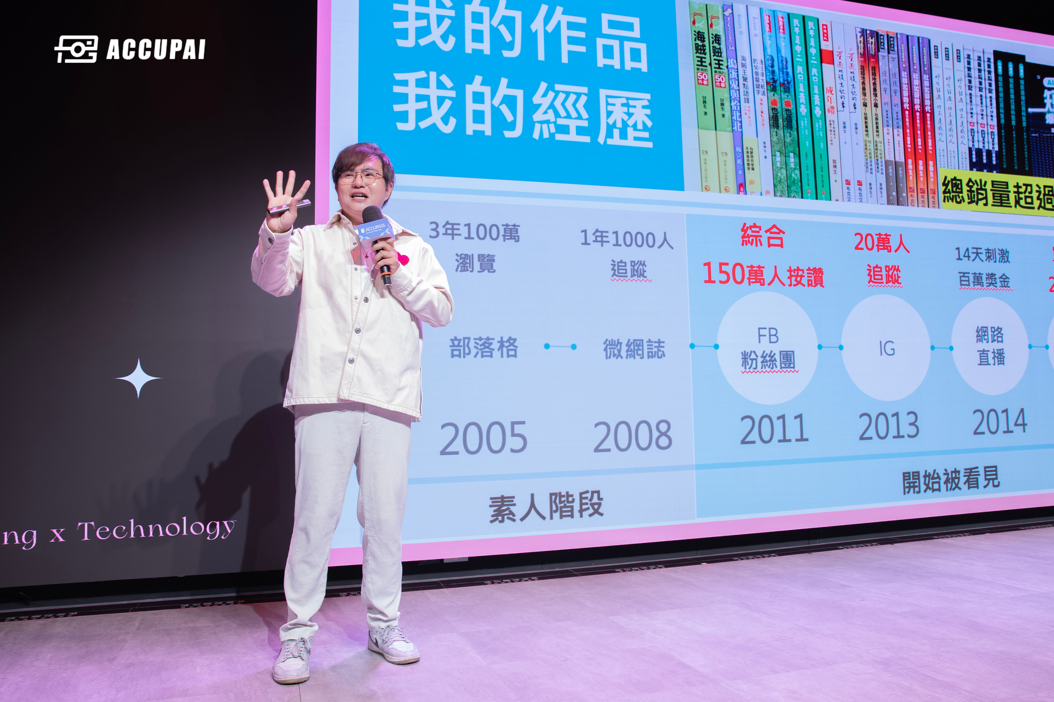 ▲ 社群經營達人 冒牌生(楊立澔) 表示成功是可以複製的,選題也是。 (照片來源:ACCUPAI 雲攝影)