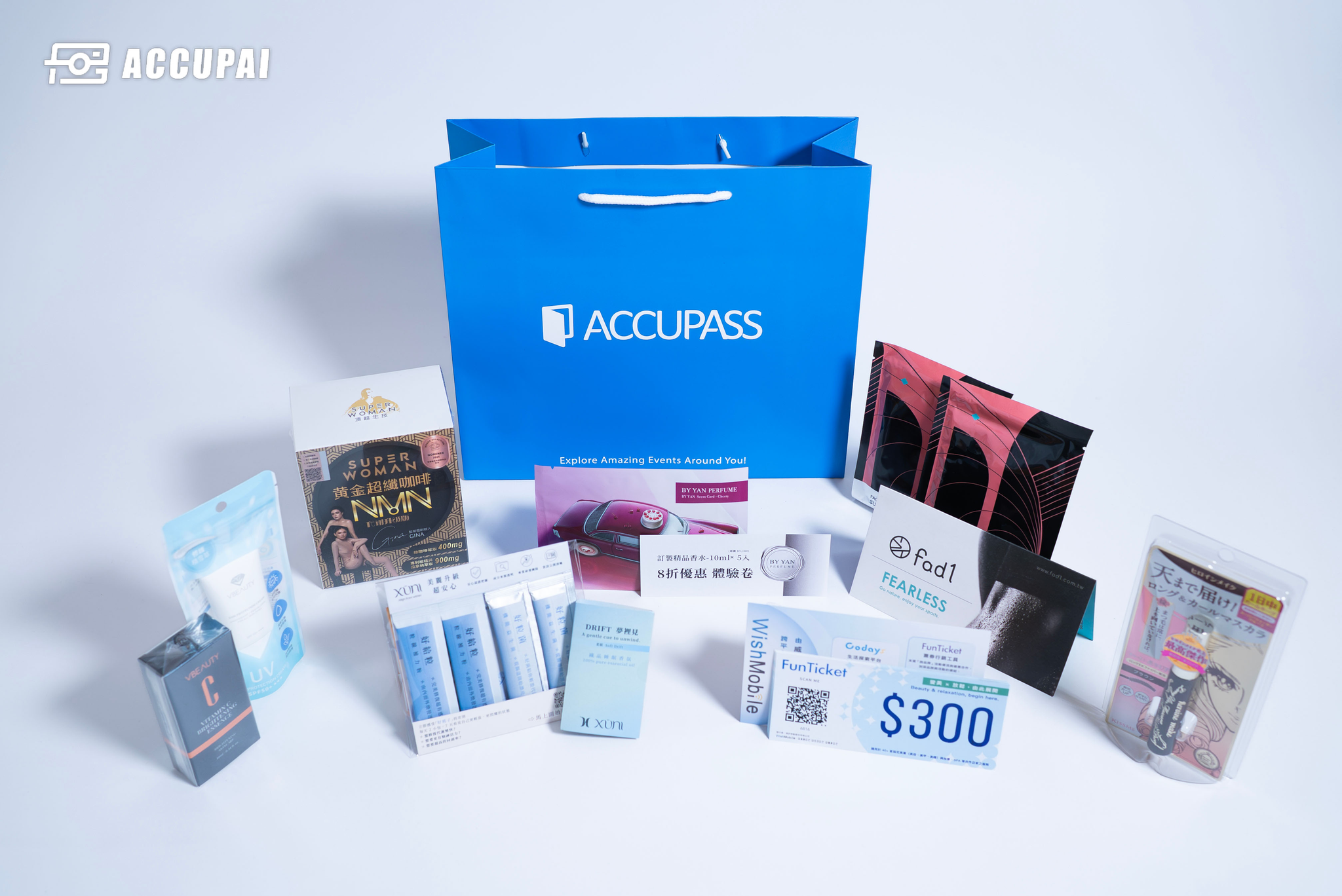 ▲ 由 微媞生技、FAD 1、KISSME、BY YAN PERFUME、XÜNI 薰尼生活、頂超生技、美業歐巴 等多家品牌合作夥伴,共同提供的「完美好禮」讓現場參加者獲得滿滿的驚喜。(照片來源:ACCUPAI 雲攝影)