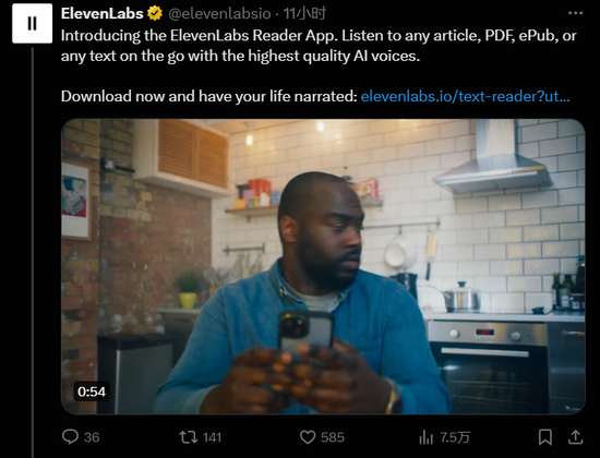 根據 ElevenLabs 官方消息,ElevenLabs 推出首款 AI 應用程式 ElevenLabs Reader,目前已經在 iOS 平台上架。