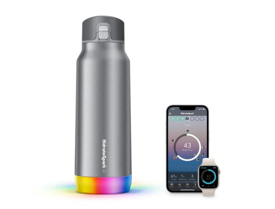 HidrateSpark PRO STEEL Smart Water Bottle是一款不鏽鋼水杯,容量達32盎司,真空絕緣瓶可以保持液體低溫達24小時。