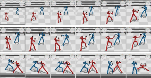 在這篇論文中,FAIR通過創建控制模型,使得兩個物理模擬角色進行競技運動。以拳擊和擊劍為例,儘管這種方法產生了競爭性的匹配,但這個方法仍然具有侷限性。