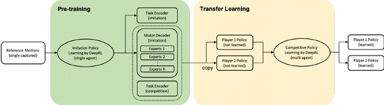 在競技運動中使用模擬角色的一個關鍵挑戰是,需要學習基本技能和拳擊級別的策略,以便它們能夠正確地協同工作。