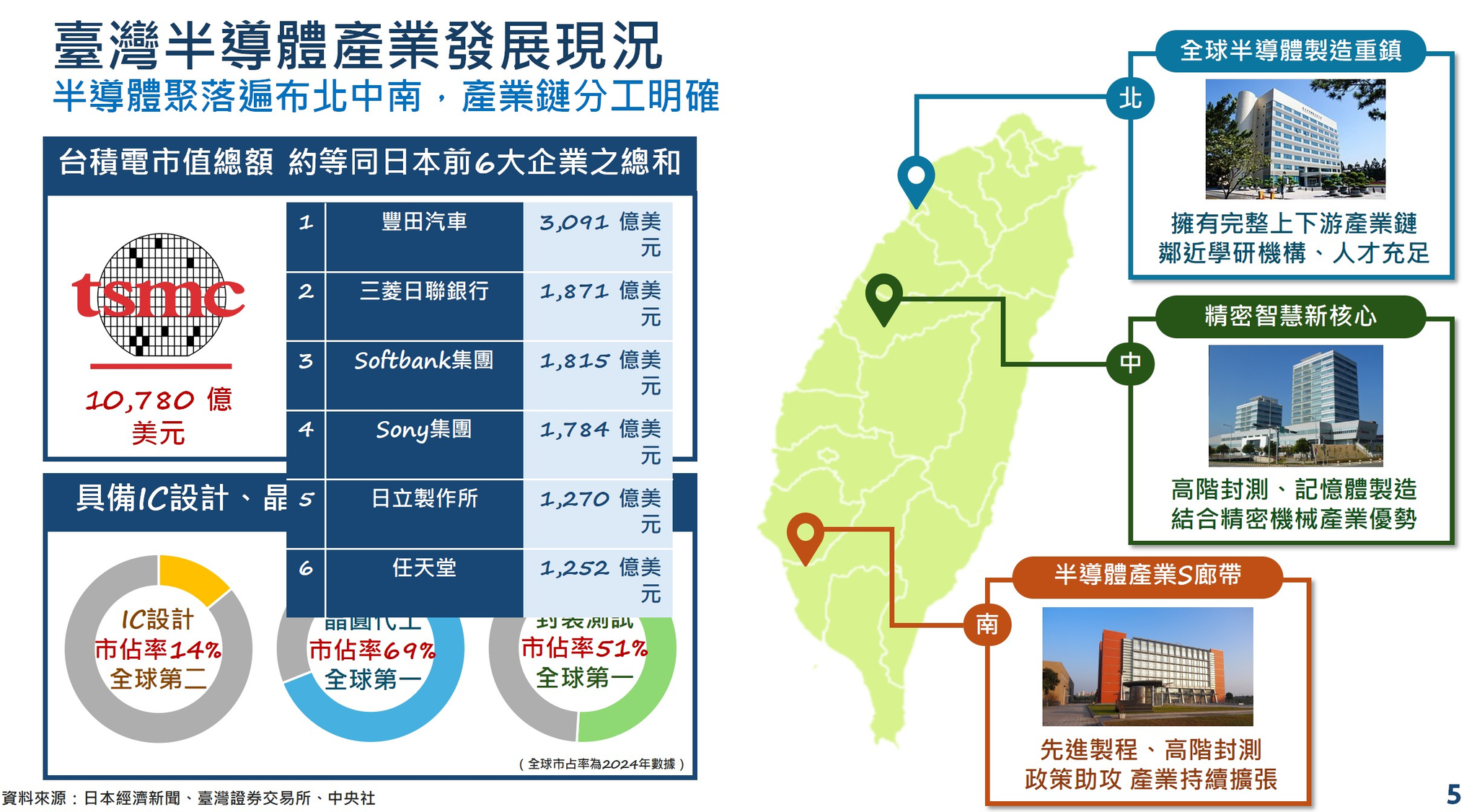 此外,王美花前部長提到,目前台積電市值高達1兆780億美元,已經相當於日本前六大企業豐田汽車、三菱UFJ銀行、軟銀、索尼、日立、任天堂市值的總和。