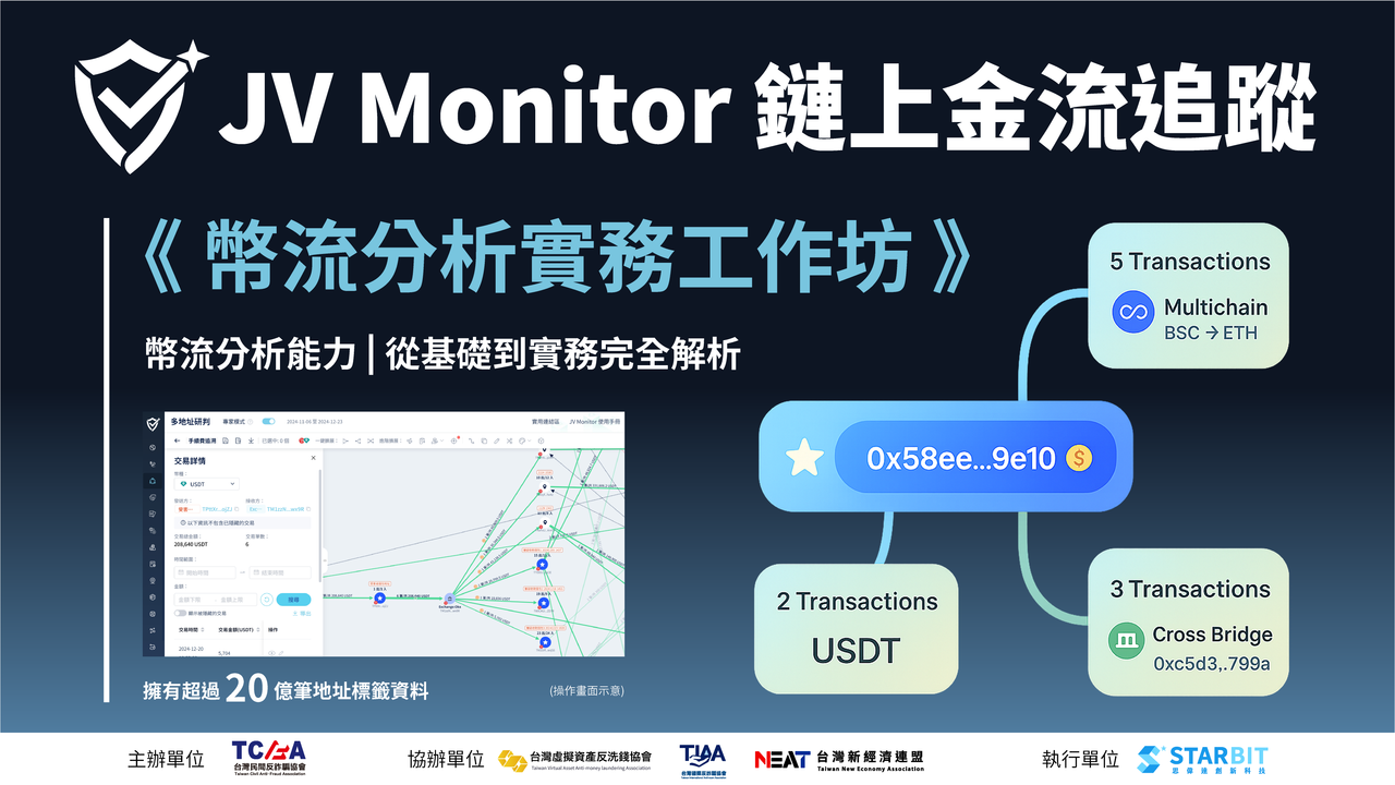 「未來,不管是比特幣、川普幣、馬斯克幣、貓貓幣或狗狗幣,大家終將接觸到虛擬貨幣。今天帶來滿滿乾貨,分享如何用 JM(JV Monitor)輕量版 實際追查被詐騙的錢。」
