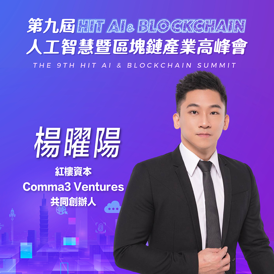紅樓資本、Comma3 Ventures共同創辦人楊曜陽,即將參與第九屆《Hit AI & Blockchain》人工智慧暨區塊鏈產業高峰會!